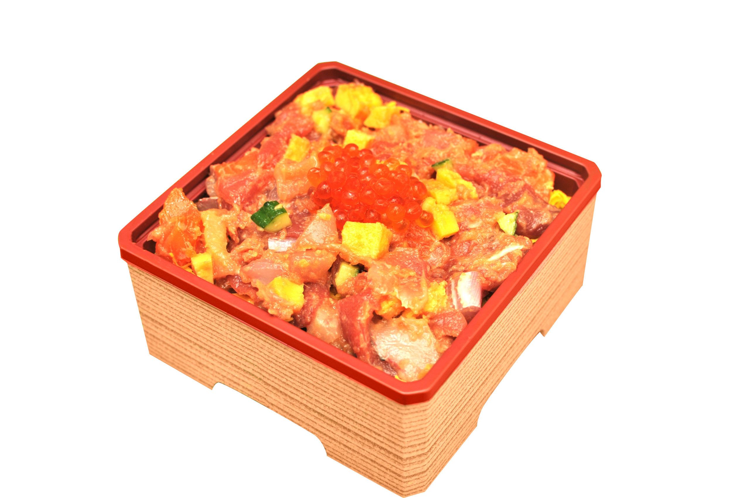 新鮮なお刺身を食べやすいサイコロ状にカットし、マグロのたたきをバランスよく特製ダレで和えたものを急速冷凍しました。